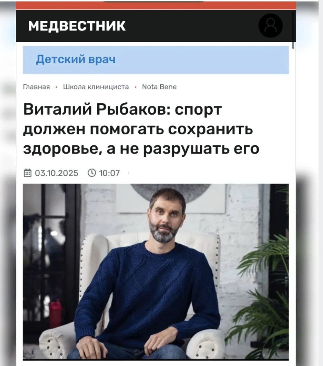 Основатель Лаборатории спортивной адаптологии им. В.Н. Селуянова Виталий Рыбаков в интервью изданию «Медвестник» подчеркнул необходимость пересмотра подхода к детскому и юношескому спорту.